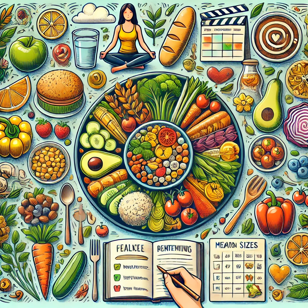마음 챙김 식사는 음식을 집중하고, 한 입 한 입을 음미하며, 몸의 허기와 포만감 신호에 귀 기울이도록 장려하는 필수적인 습관입니다. 이러한 접근 방식은 음식과의 건강한 관계를 발전시키고 과식을 예방하는 데 도움이 될 수 있습니다. 마음 챙김 식사를 연습하기 위해서는 식사 중 방해 요소를 제거하세요(텔레비전을 끄고 휴대전화를 치워두세요.)