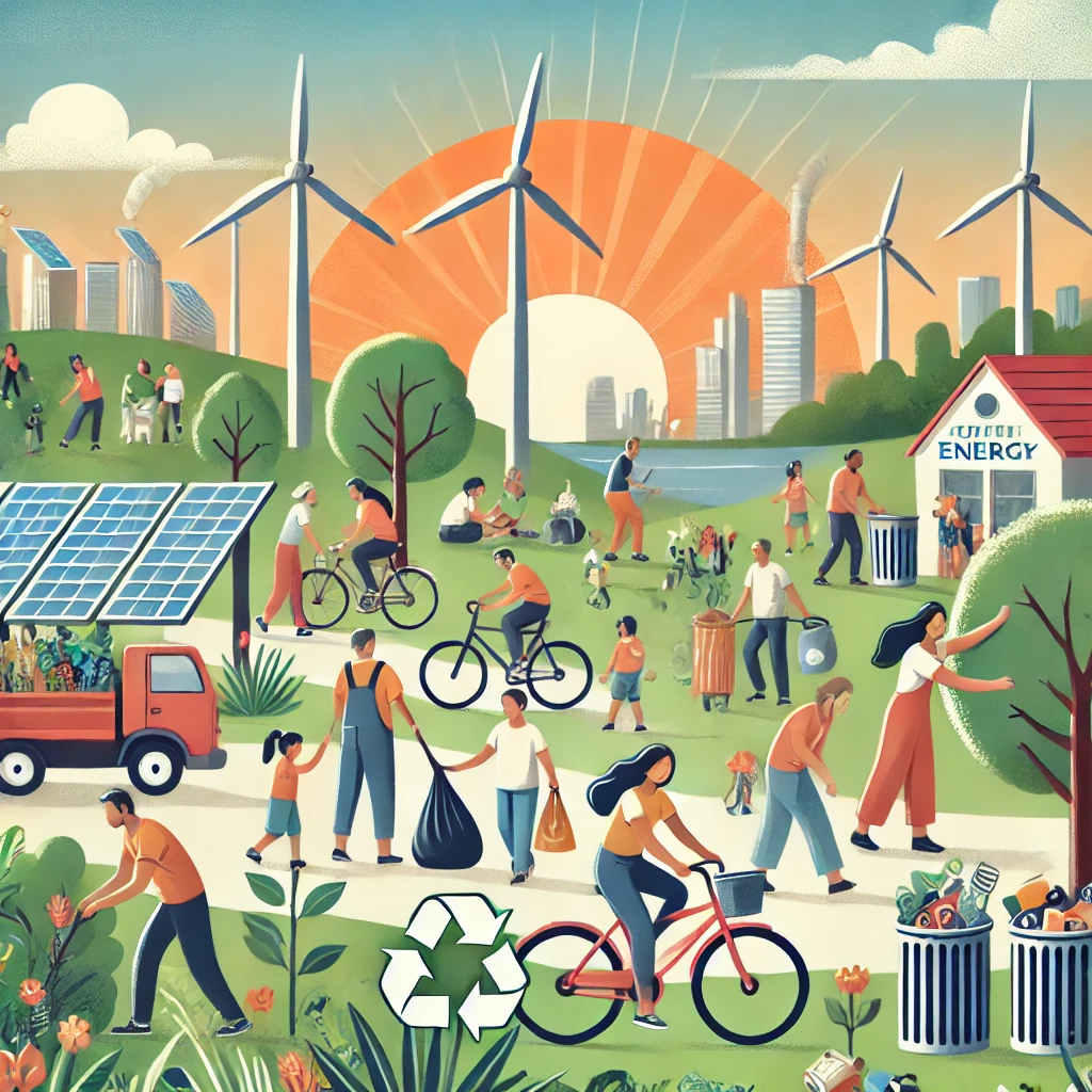 개인 행동은 작게 보일 수 있지만, 집단적으로는 상당한 변화를 일으킬 수 있습니다. 매일 에너지 소비, 교통, 쓰레기 처리와 관련된 우리의 선택은 기후 변화에 기여하거나 이를 완화하는 데 영향을 미칠 수 있습니다. 예를 들어, 집에서 에너지 사용량을 줄이면(조명을 끄고, 에너지 효율적인 가전제품을 사용하며, 재생 가능한 에너지원으로 전환하는 것) 탄소 발자국을 줄이고 온실가스 배출을 감소시킬 수 있습니다.