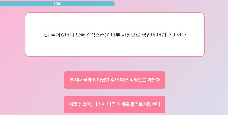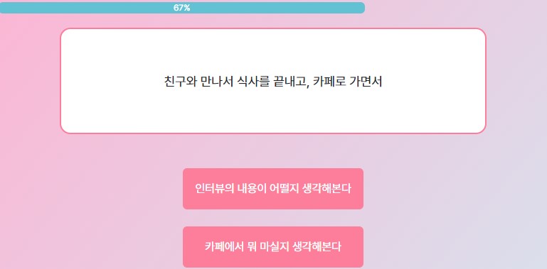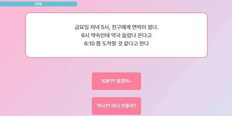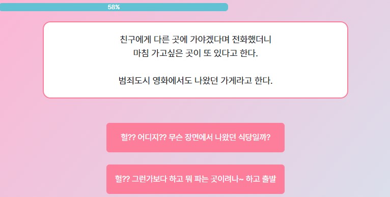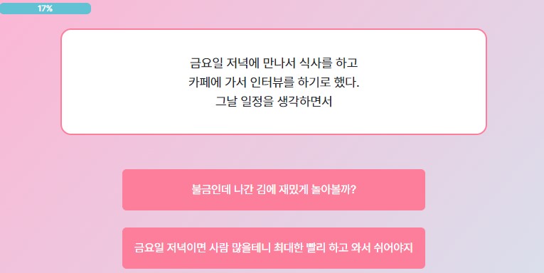 2번째는 '불금인데 나간 김에 재밌게 놀아볼까?' 선택!