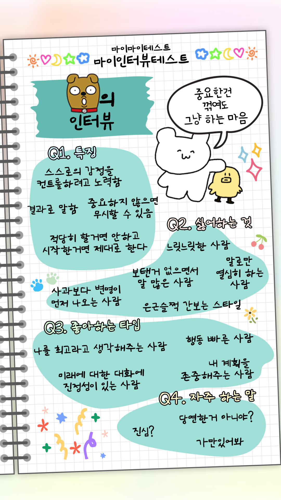 나를 몇가지 질문으로 다 알아버린 듯한 결과가 나와요